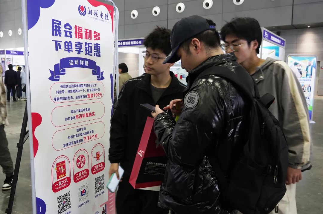 本次展覽,湘聯(lián)電纜展臺(tái)不僅在服務(wù)上下功夫,更是在價(jià)格與活動(dòng)上集中發(fā)力,為本次展會(huì)專項(xiàng)申請(qǐng)了價(jià)格優(yōu)惠和商務(wù)筆記本、養(yǎng)生壺、電工鉗等多重好禮,推出下單抽獎(jiǎng)等消費(fèi)福利,為客戶帶去切實(shí)的下單購(gòu)線利益。