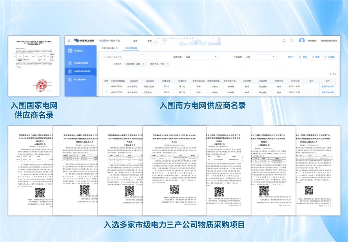2025年,湘聯(lián)電纜在電力市場(chǎng)的沃土上持續(xù)向下扎根,向上生長(zhǎng)。不僅穩(wěn)居國(guó)家電網(wǎng)、南方電網(wǎng)供應(yīng)商名錄,同時(shí),入選多家市級(jí)電力三產(chǎn)公司的物資采購(gòu)項(xiàng)目,將服務(wù)的根系拓展至更廣闊的生態(tài)圈。以深耕之姿,持續(xù)為電力系統(tǒng)的安全、穩(wěn)定與高效運(yùn)行,貢獻(xiàn)堅(jiān)實(shí)的力量。